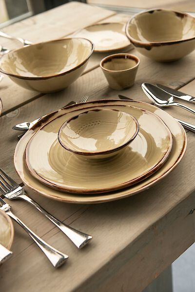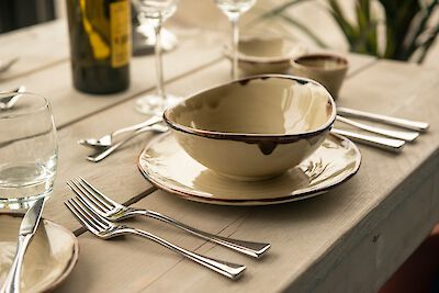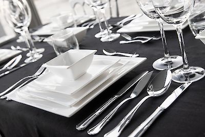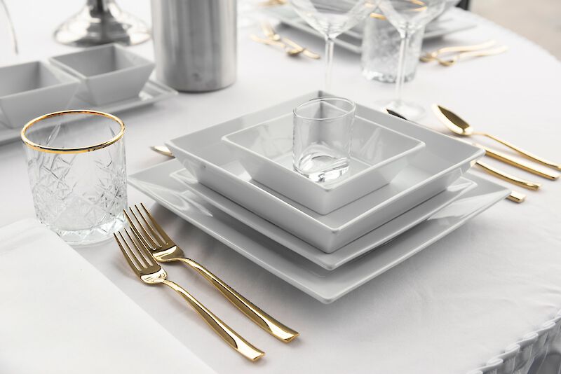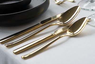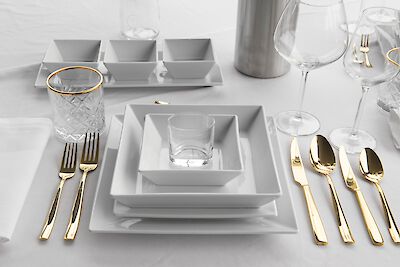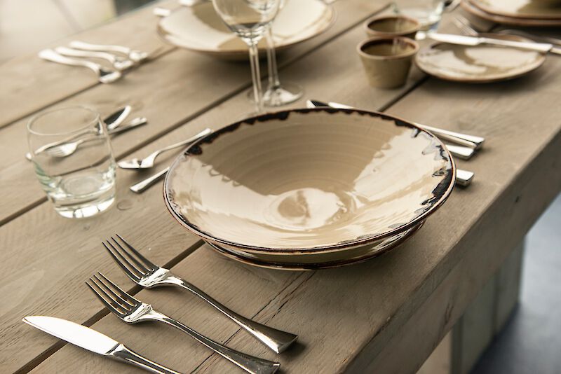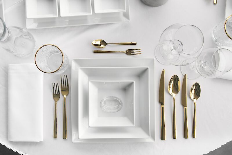 Het Black servies bestaat uit drie onderdelen maar een tafel gedekt met deze borden maakt grote indruk. In combinatie met het ‘golden’ bestek zeer stijlvol en een tikkeltje eigenwijs.